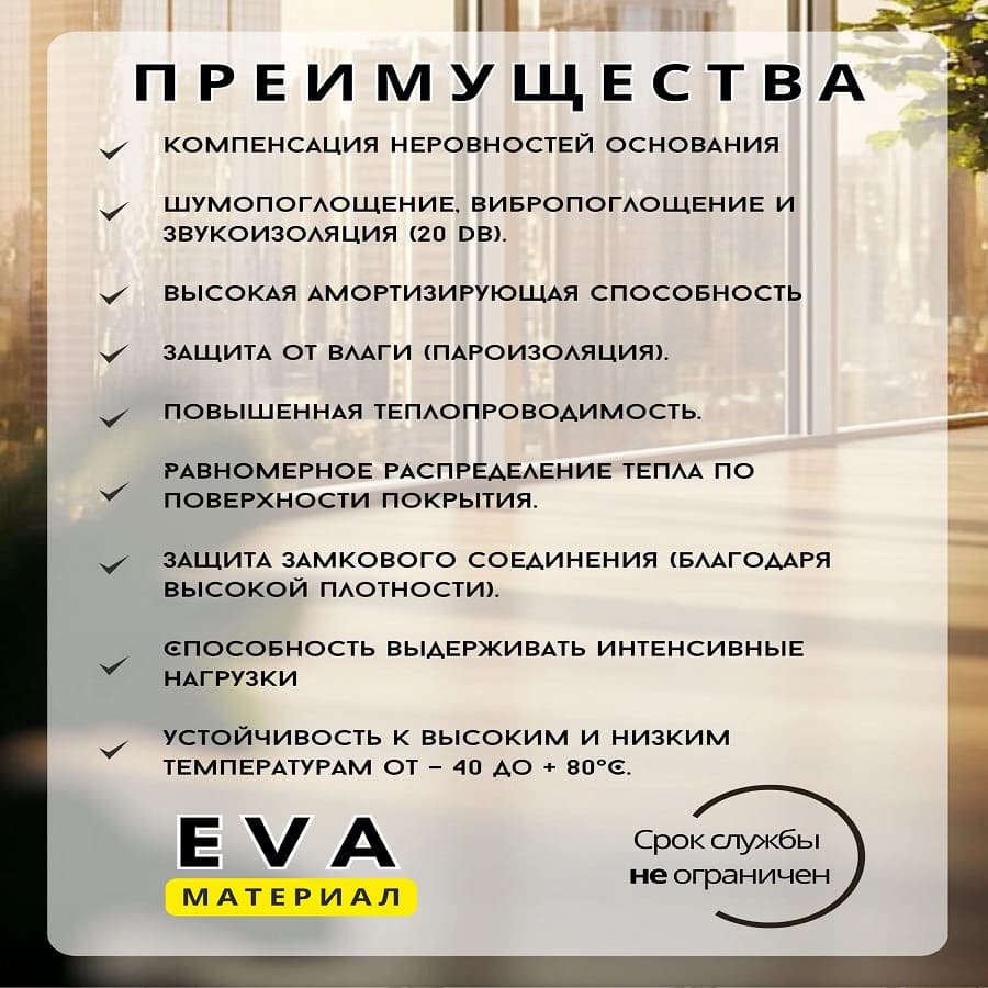 Интегрированная пленка защищает покрытие от влаги снизу, делая подложку устойчивой к сырости