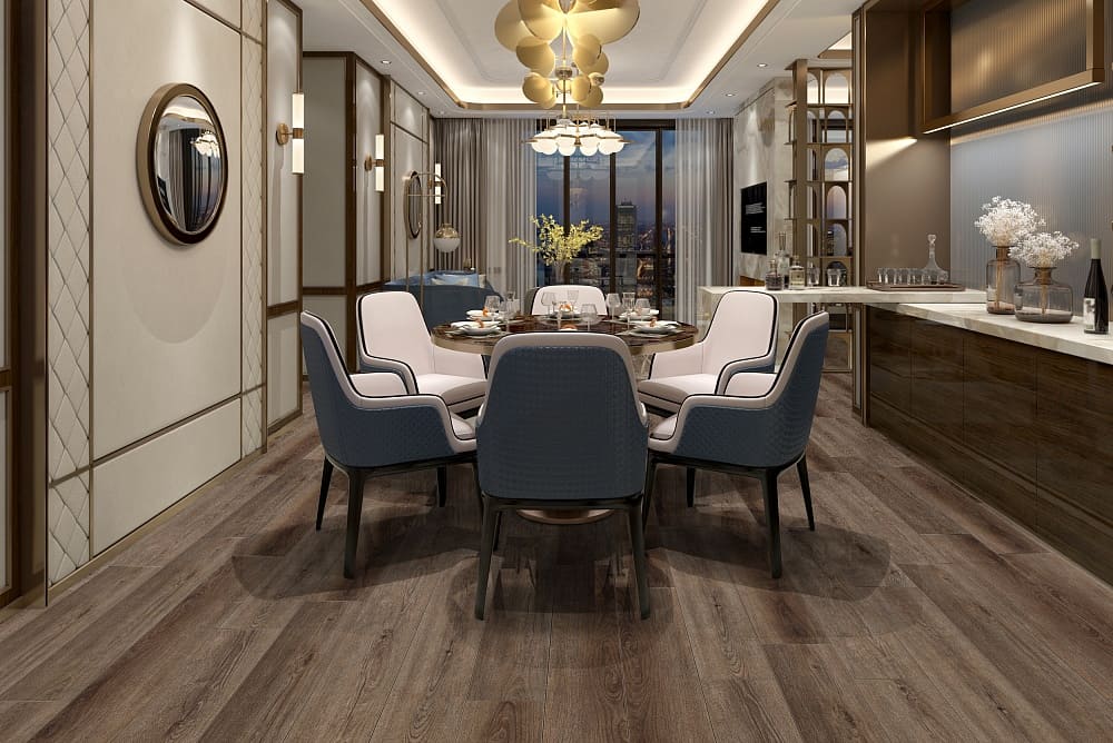 Водостойкий SPC CronaFloor 4V Дуб Регин BD-40030-5 — это надежное напольное покрытие толщиной 4 мм, которое подходит для всех комнат в квартире или дома. Защитный слой 43 класса позаботится о том, чтобы загрязнения было легко удалить с поверхности. Материал тихий, приятный на ощупь (напоминает срез натурального дерева), не скользкий и сохраняет линейные размеры при укладке одним полотном на большой площади.