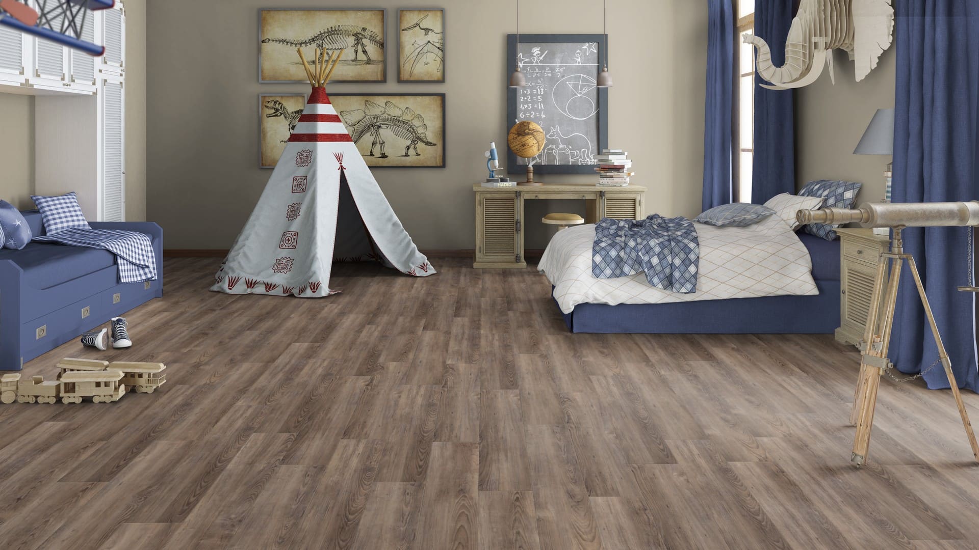 Замковой "каменный ламинат" Таркетт Prime Click Clay Brown — это надежное напольное покрытие, которое подходит для всех комнат в квартире или дома. Основа доски состоит из каменно-полимерного композитного материала SPC, усиленного микромрамором. Поэтому покрытие сохраняет линейные размеры и противостоит вмятинам от ножек мебели и каблуков. Надежный защитный слой толщиной 0.3 мм справится с любыми нагрузками. Коллекция "Прайм Клик" производится компанией Tarkett на российском заводе. Она безопасна, легко укладывается. Материал очень тихий, приятный на ощупь, не скользкий и водостойкий.
