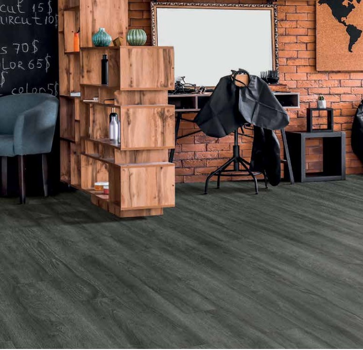 Клеевая виниловая плитка ПВХ (LVT) Таркетт Дуб Тренд графитовый годится для любой комнаты в квартире, доме и офисе. Надежный защитный слой толщиной 0,7 (мм) справится с любыми нагрузками. Коллекция Modulart выпускается компанией Tarkett на российском заводе. Она безопасна для здоровья, очень тихая, приятная на ощупь.