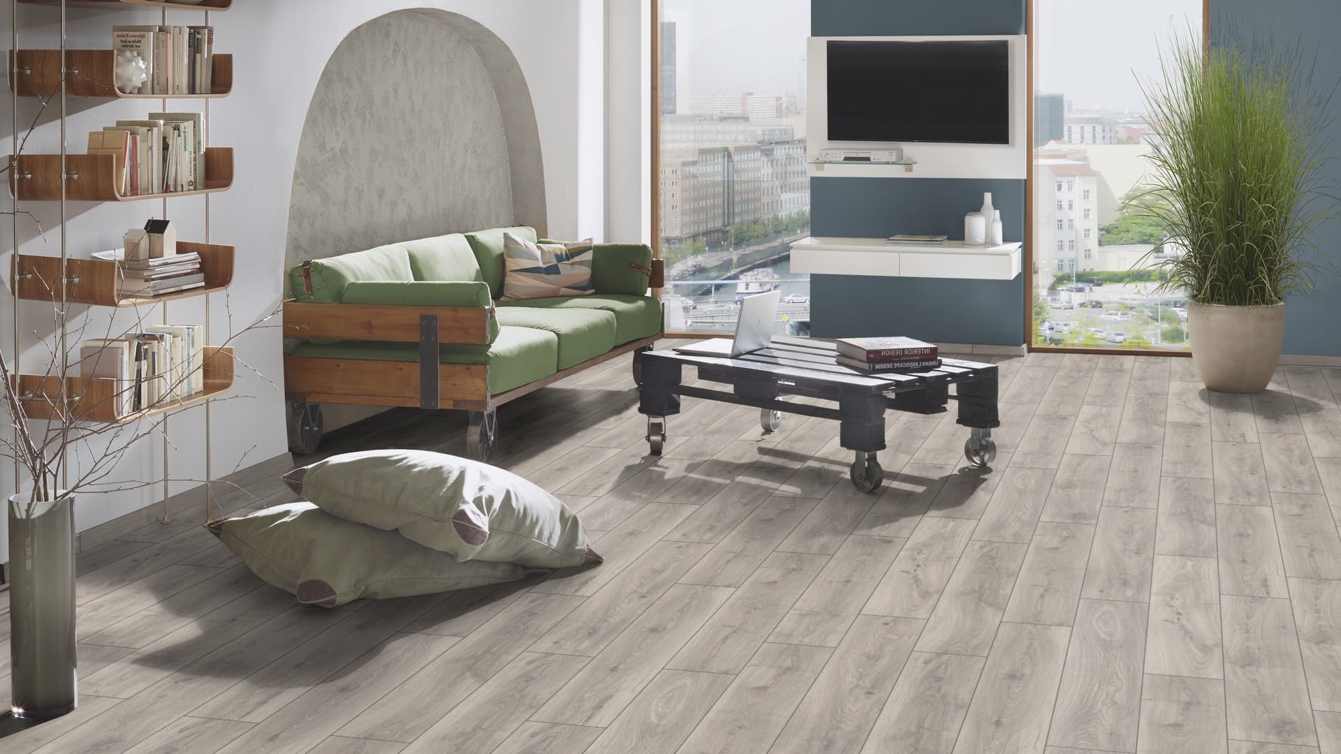 Благодаря технологии MO.RE! полы Kronospan коллекции Atlantic 8 более устойчивы к влаге. Они в высшей степени подходят для квартир с домашними животными. Сочетание матового защитного слоя с хромированной древесной структурой рисунка придают полу ощущение натуральной однополосной паркетной доски под маслом, при этом ламинированный пол Кроноспан К451 Дуб Сильвердейл очень прочный материал.