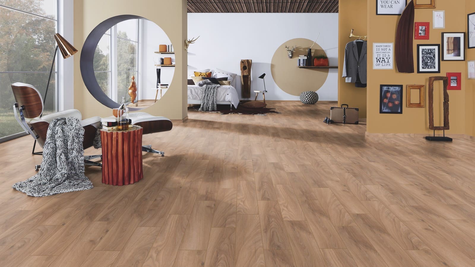 Инновационная технология O.R.C.A. (Organic Rigid Coreboard Antostatic) позволяет укладывать ламинированный пол BinylPRO 1519 Дуб Вековой даже в ванных комнатах, где до сих пор можно было использовать только винил или плитку.