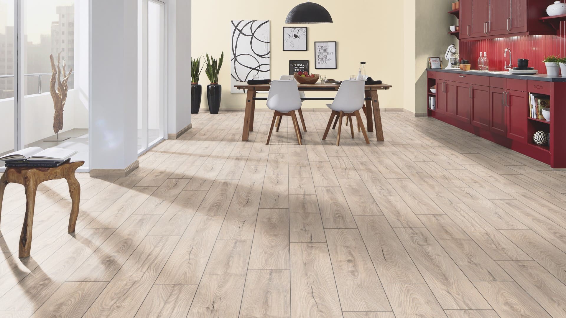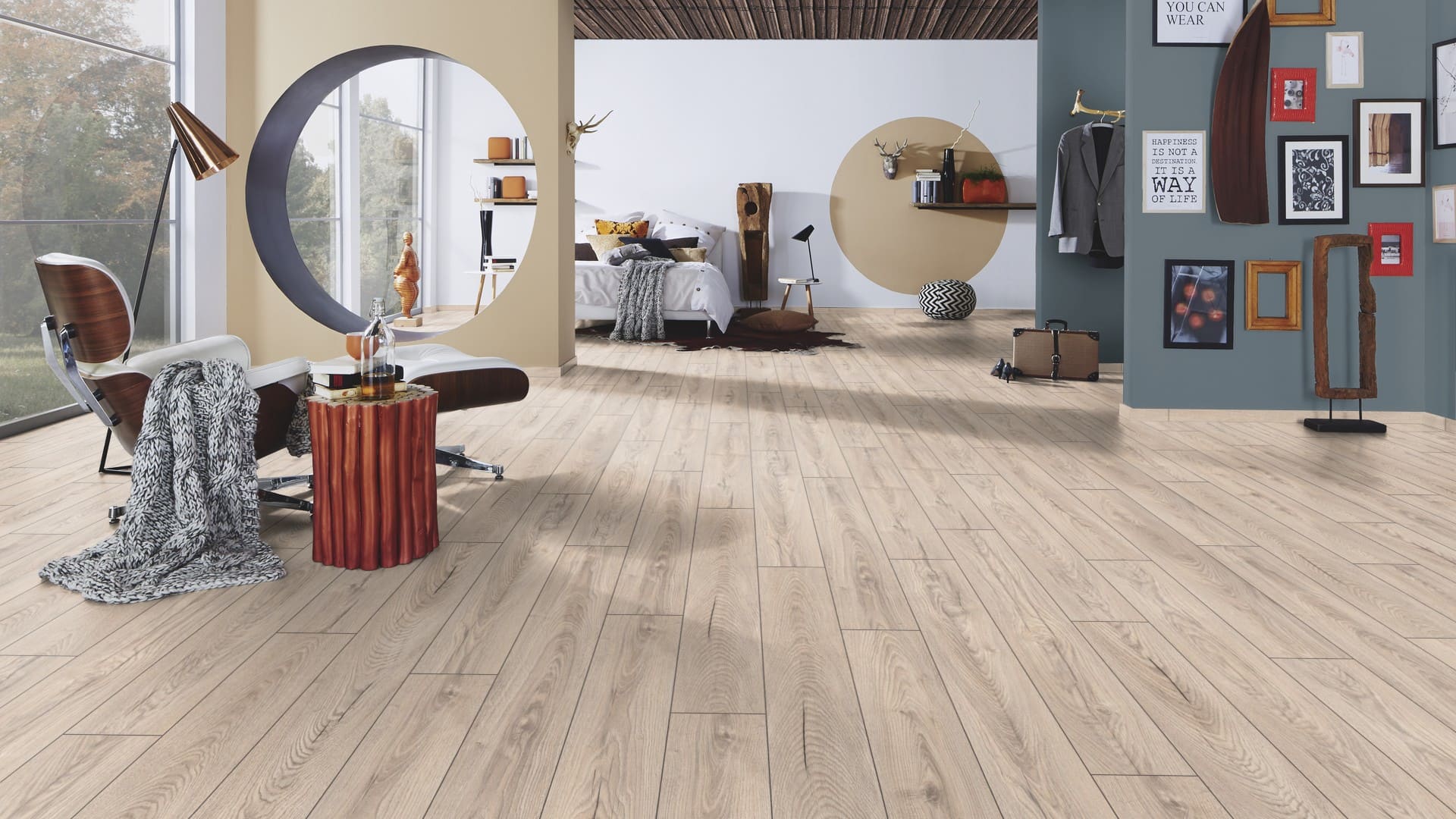 Инновационная технология O.R.C.A. (Organic Rigid Coreboard Antostatic) позволяет укладывать ламинированный пол UltraFloor K 478 Дуб Карпентер светлый (Light Oak Carpenter) даже в ванных комнатах, где до сих пор можно было использовать только винил или плитку.