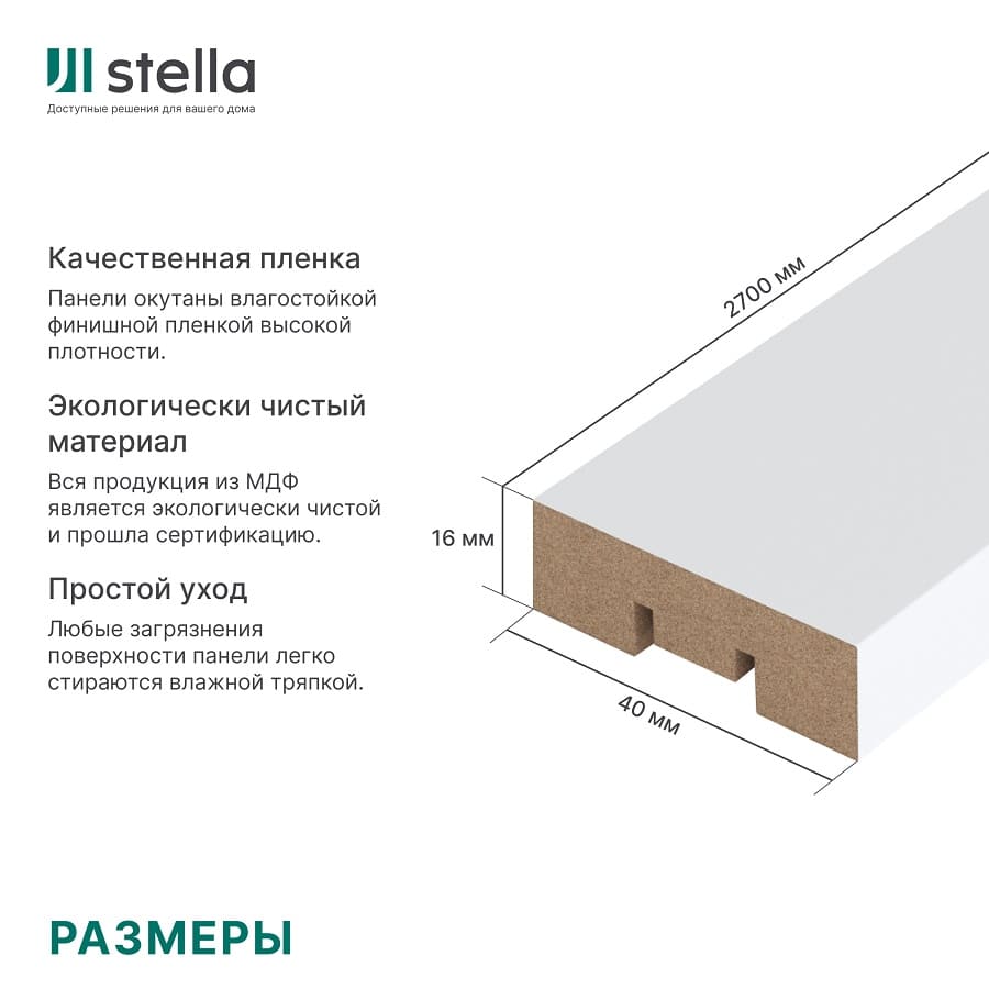 Создайте стильный интерьер с МДФ-рейками STELLA Бриона "Белая" 40 мм, длина 2.7 м. Доставка по Минску и Беларуси.