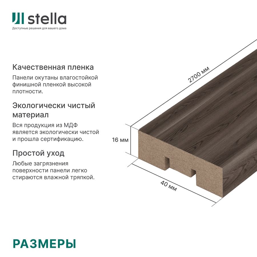 Создайте стильный интерьер с МДФ-рейками STELLA Бриона "Орех Бразильский" 40 мм, длина 2.7 м. Доставка по Минску и Беларуси.