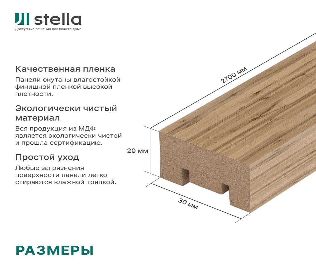 Создайте светлый и уютный интерьер с МДФ-рейками STELLA Милана Light "Пекан" 30 мм, длина 2.7 м. Доставка по Минску и Беларуси.