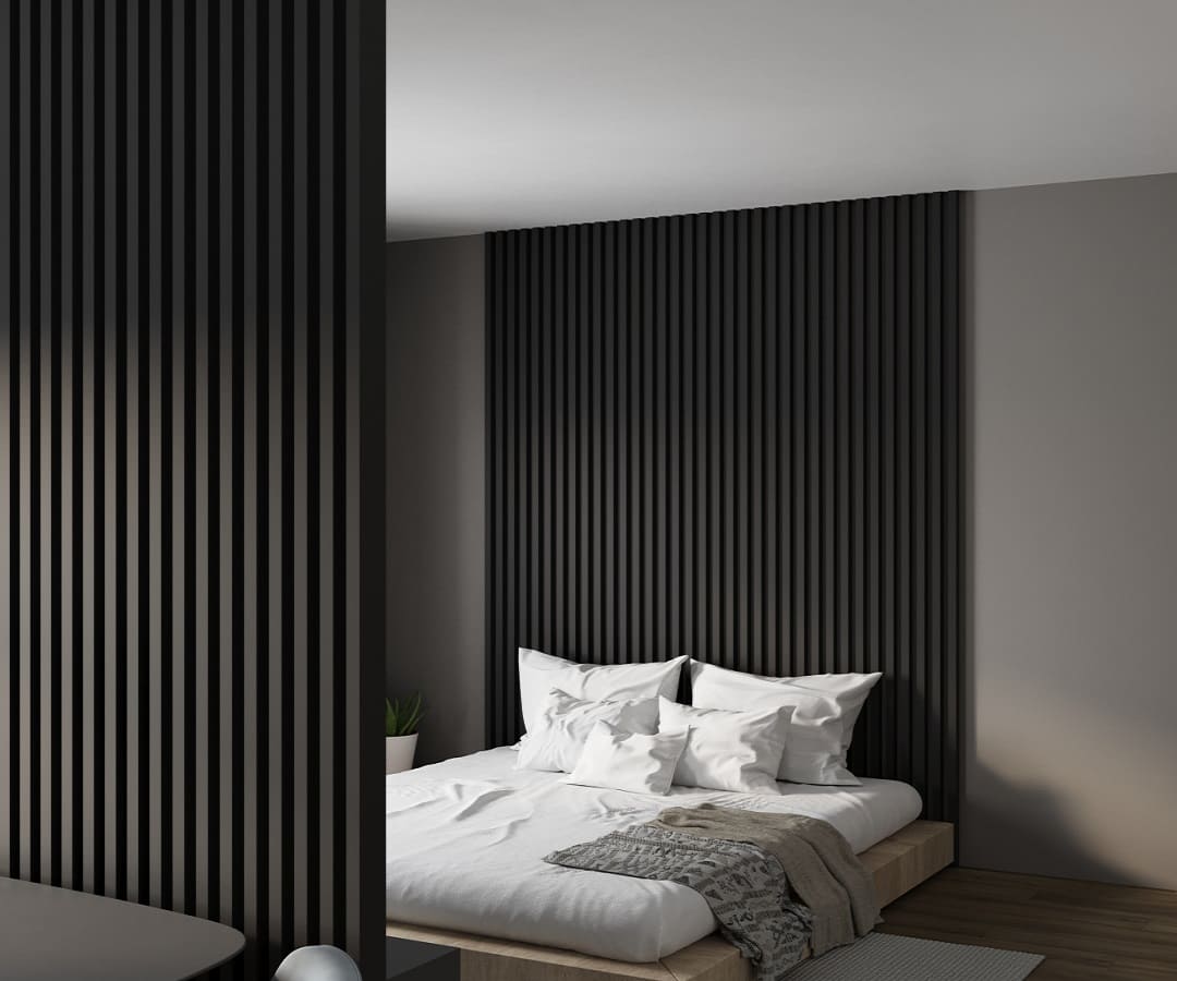 Премиальные черные МДФ-рейки для стен. Глубокий матовый цвет. Эксклюзивная серия.