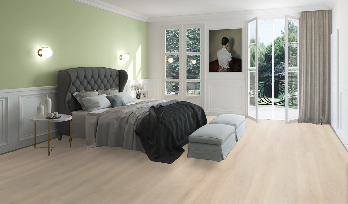 Прочный 32 класс российского ламината Эггер Дуб Бруклин белый рассчитан на высокую нагрузку в бытовых и коммерческих помещениях.