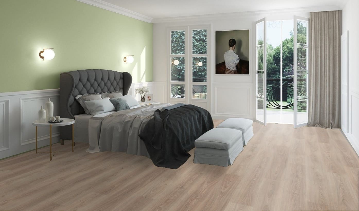 Прочный 32 класс российского ламината Эггер EPL102 Дуб Амьен светлый без фасок рассчитан на высокую нагрузку в бытовых и коммерческих помещениях.