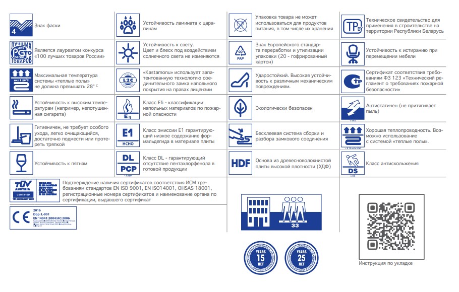 Замки UniClic (патент компании Unilin Бельгия) на каждой панели обработаны воском, который препятствует скрипам и разбуханию от воды. Такое надежное напольное покрытие будет служить в квартире или доме более 25 лет.