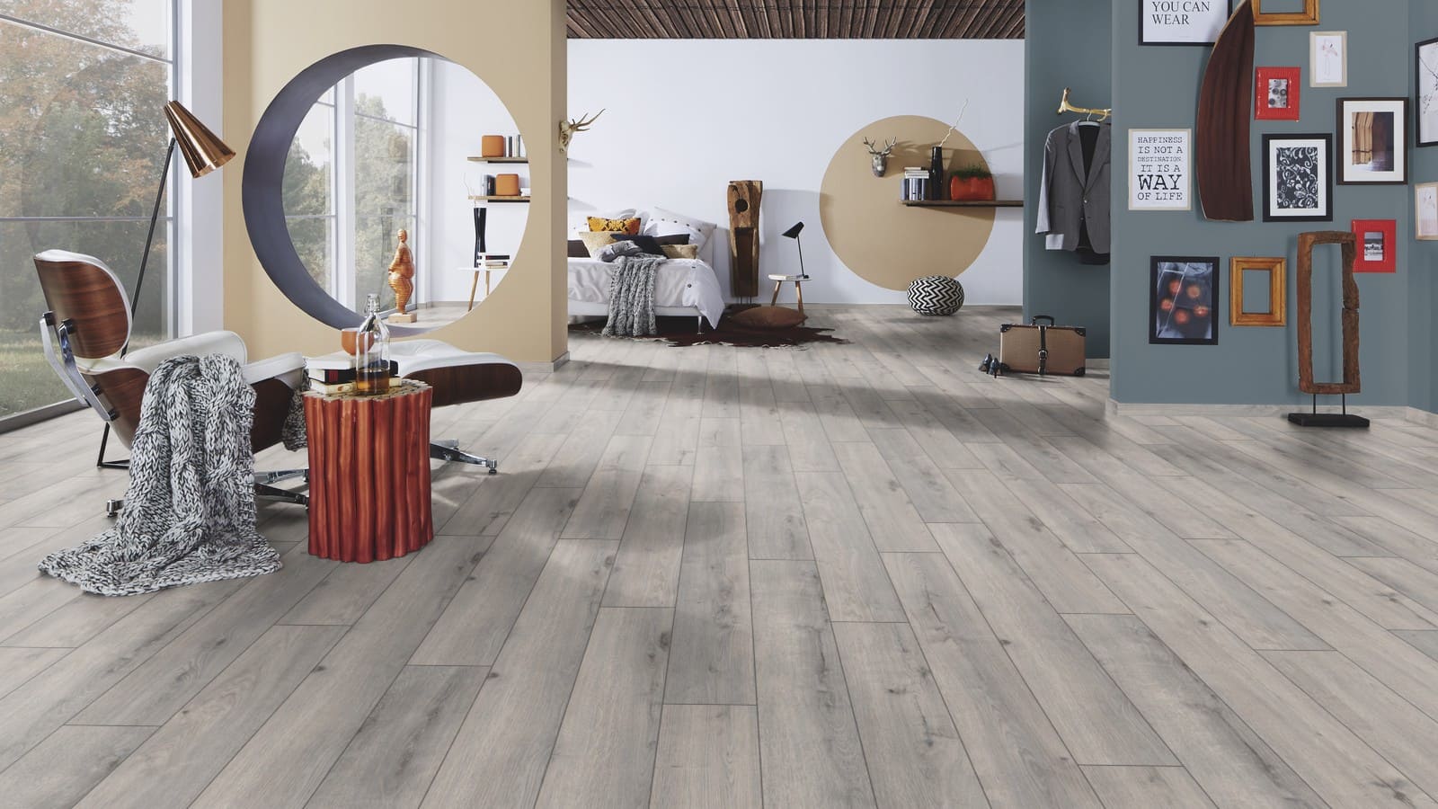 Ламинат Krono Original K392 Дуб Атомик имеет фаски по краям доски с 4-х сторон и соответствует 32 классу прочности. Сочетание матового защитного слоя с хромированной древесной структурой рисунка придают полу ощущение натуральной однополосной паркетной доски под маслом, при этом ламинированный пол очень прочный материал.