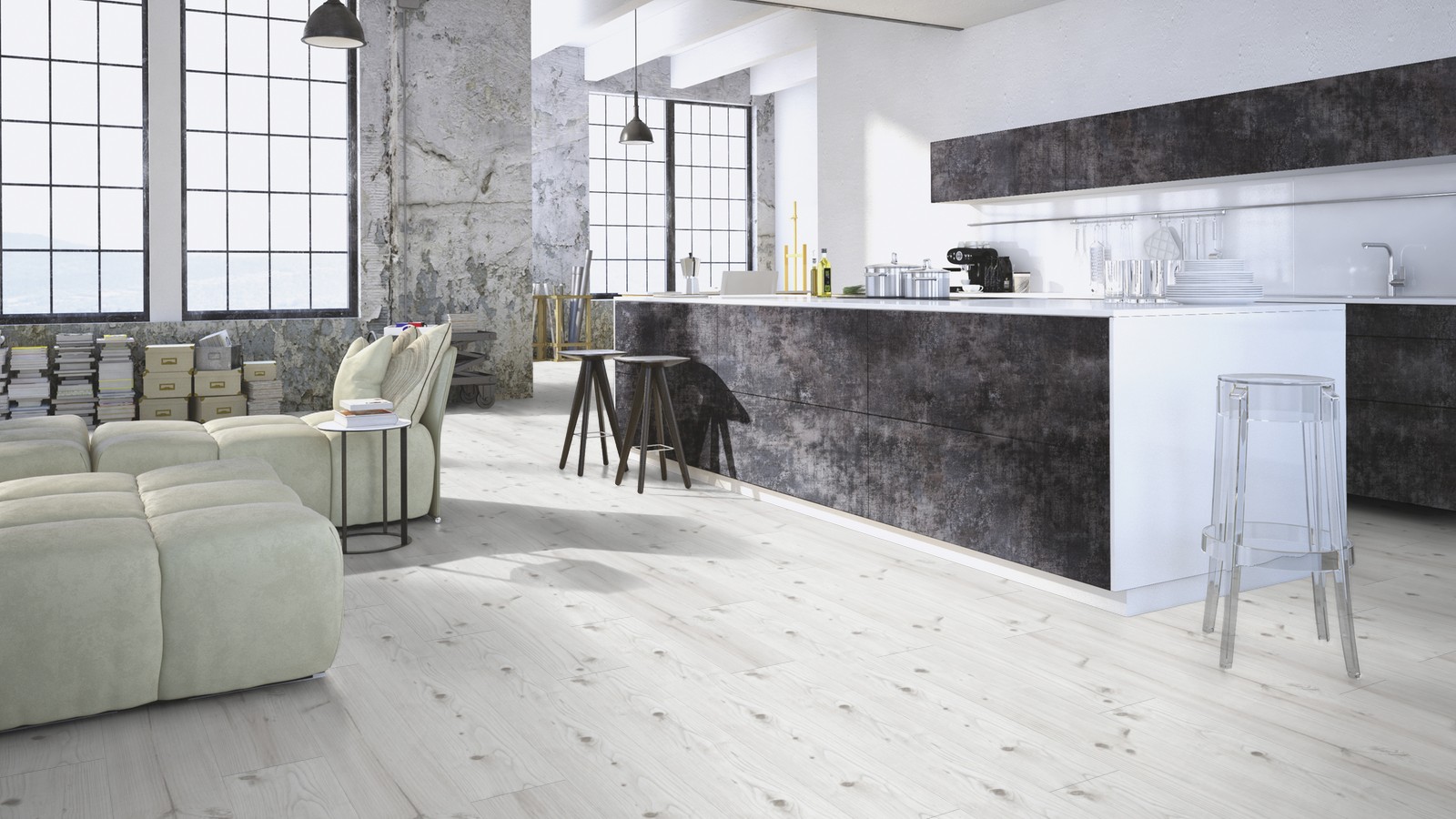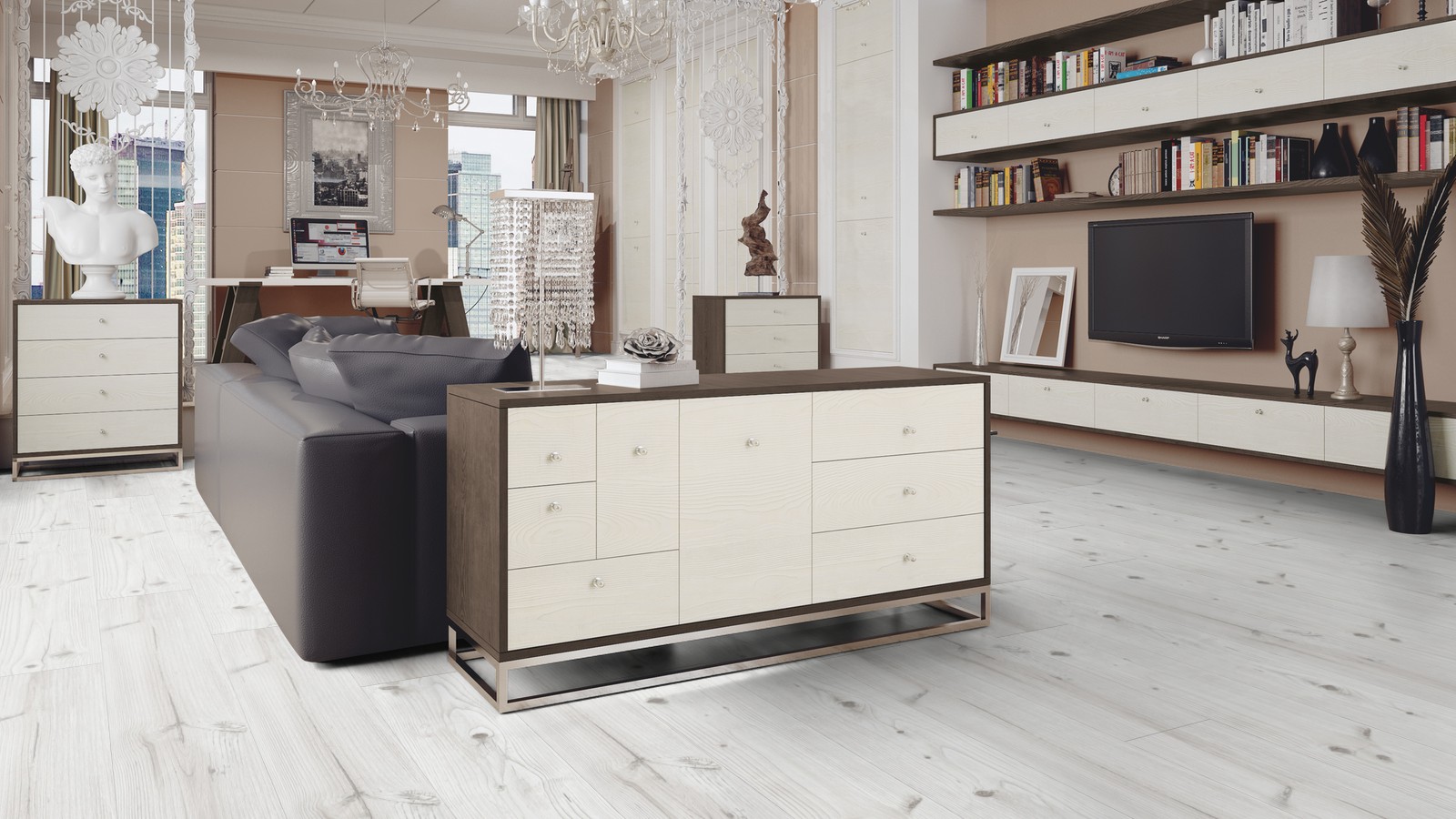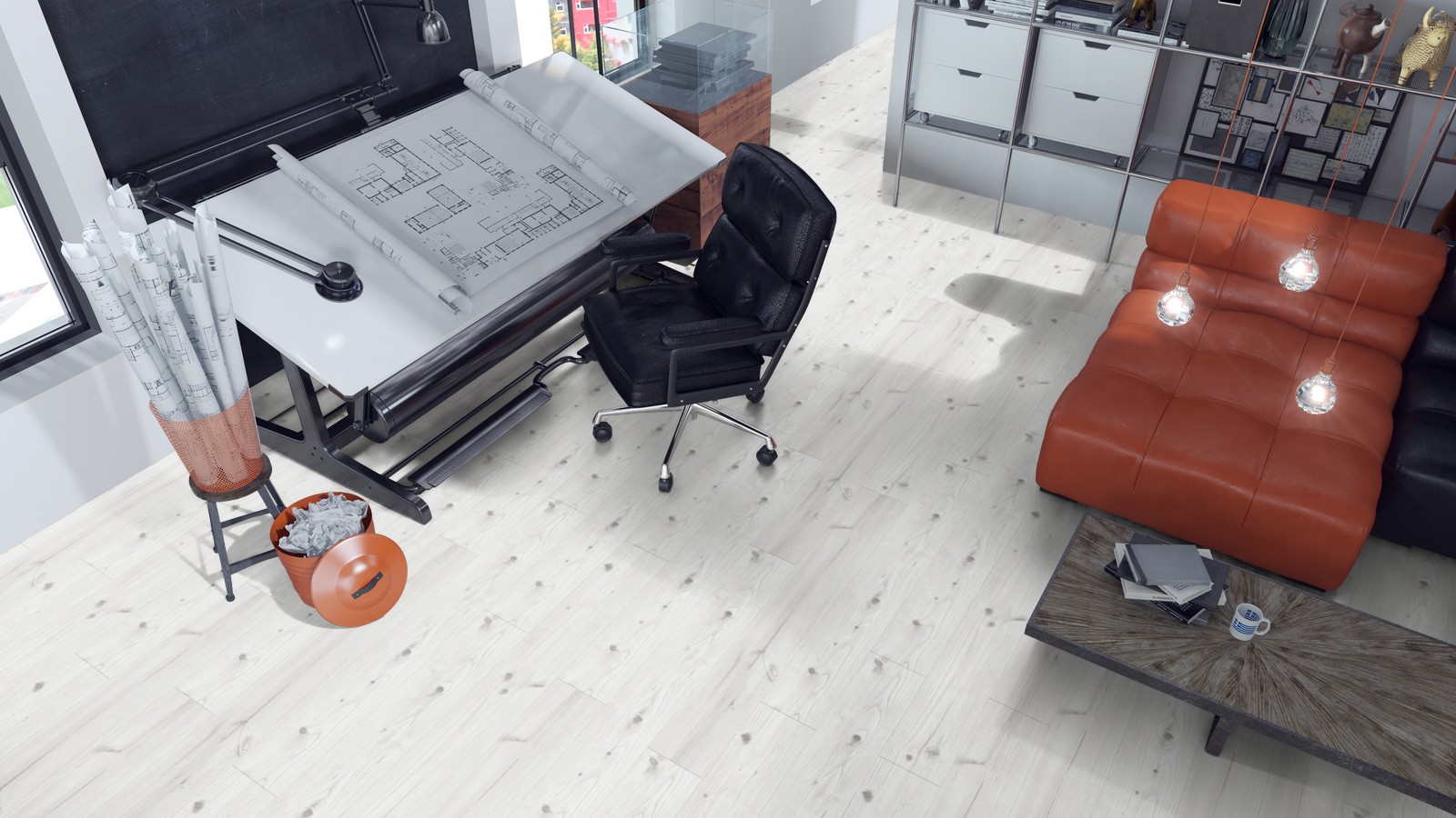 Декоры имеют матовую структуру древесных волокон с эффектом потертости щеткой, поэтому они напоминают пол из настоящего дерева, что делает комнату теплой, уютной, дружелюбной и близкой к природе.