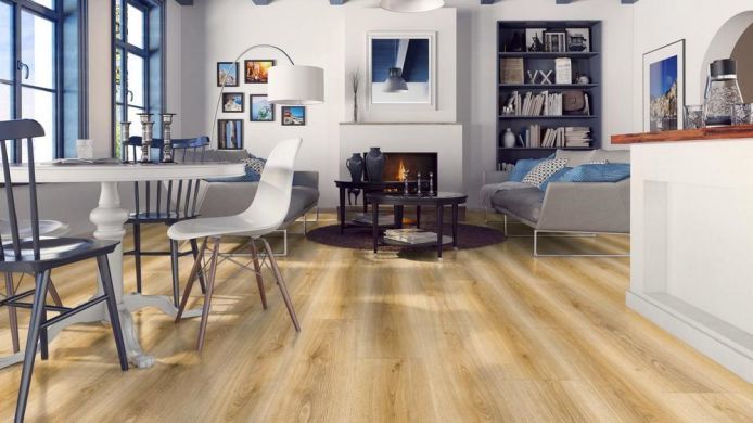 Толщина панелей серии "Linea" 8 мм и 32 класс прочности позволяют напольному покрытию служить более 20 лет. Декоры имеют 3D теснение в регистр, поэтому они напоминают пол из настоящего дерева, что делает комнату теплой, уютной, дружелюбной и близкой к природе.