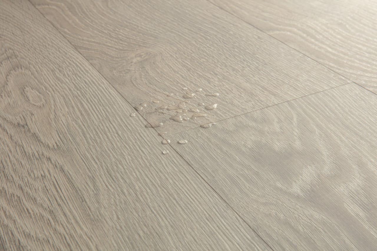 Сверхплотная водостойкая древесноволокнистая плита из которой изготовлена коллекция "Классик" покрыта защитным слоем 32 класса с дополнительным напылением секретного состава "Scratch Guard". Он помогает ламинату "Квик степ" сопротивляться воздействию мелкого абразива (песка). Обработка воском замкового соединения Uniclic препятствует проникновению и разрушению напольного покрытия.