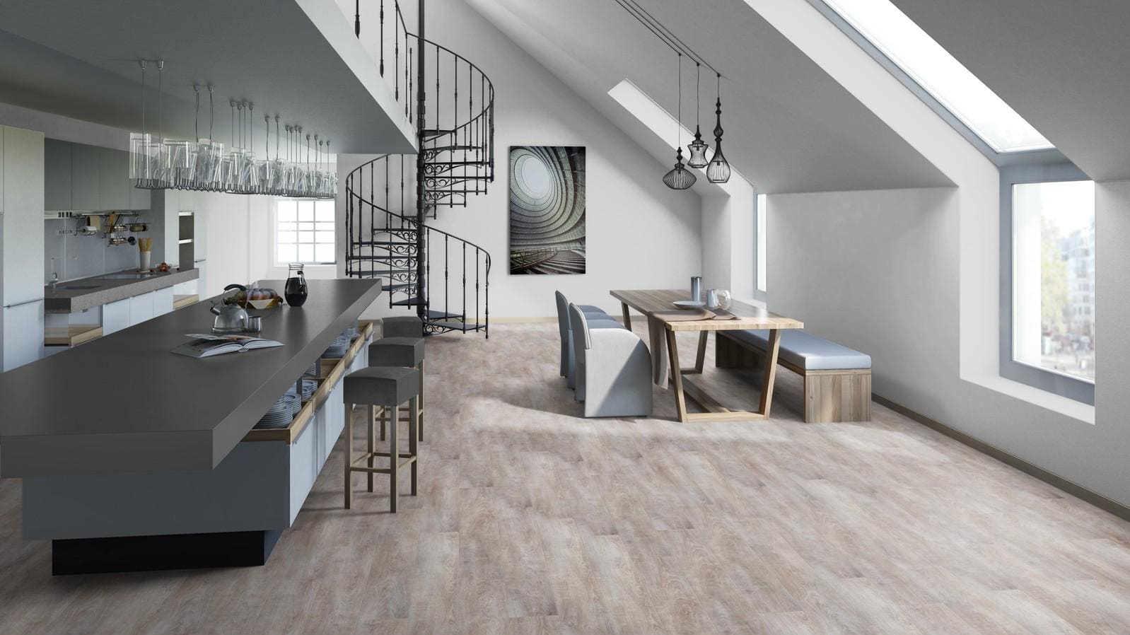 Поверхность ламината Tarkett Брижит серии Cinema имеет характерный винтажный стиль, глубокую выразительную структуру с эффектом ручной обработки дерева. Матовый защитный слой 32-класса с эффектом блестящих пор очень устойчивый к истиранию.
