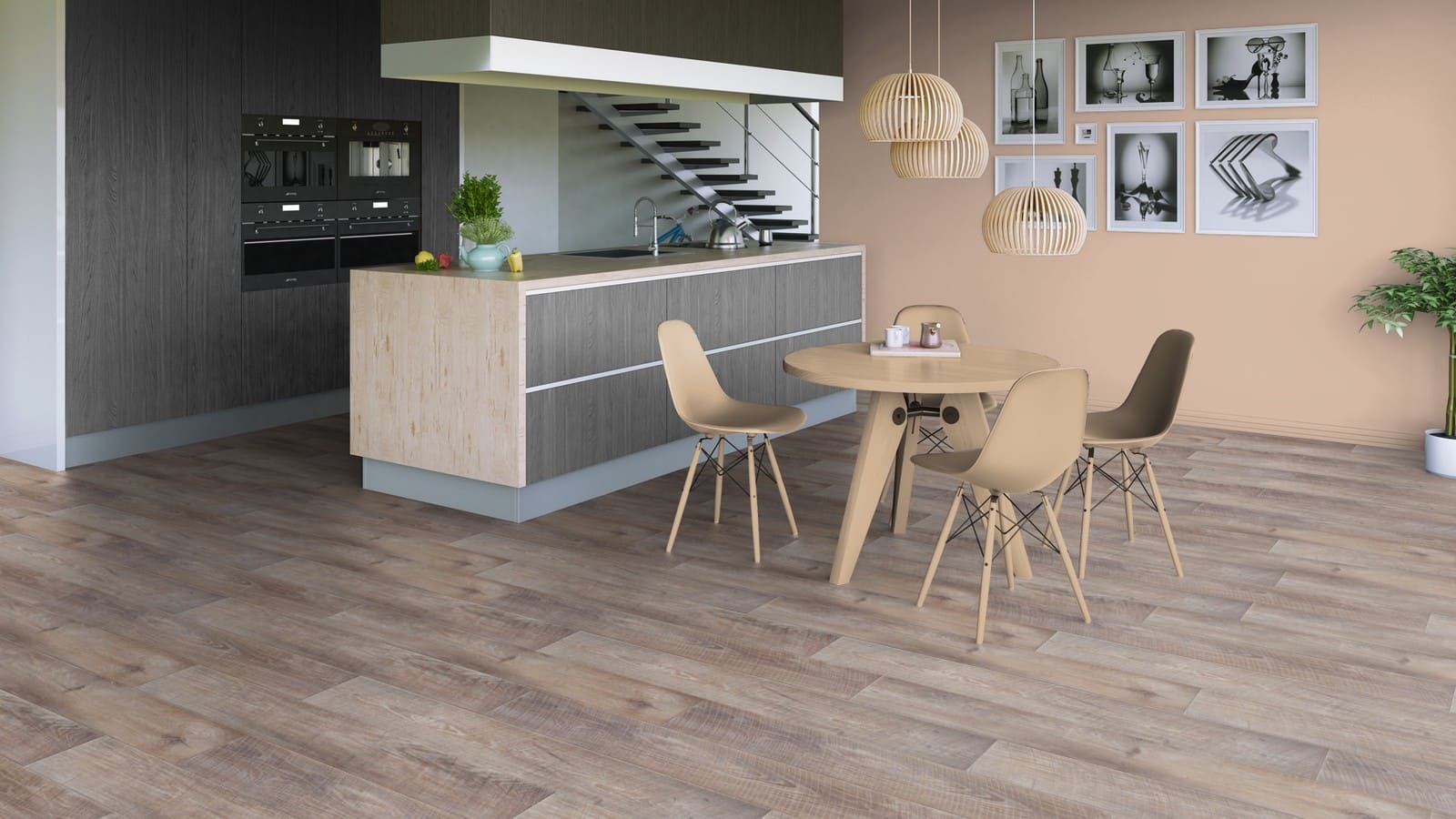 Поверхность ламината Tarkett Вивьен серии Cinema имеет характерный винтажный стиль, глубокую выразительную структуру с эффектом ручной обработки дерева. Матовый защитный слой 32-класса с эффектом блестящих пор очень устойчивый к истиранию.
