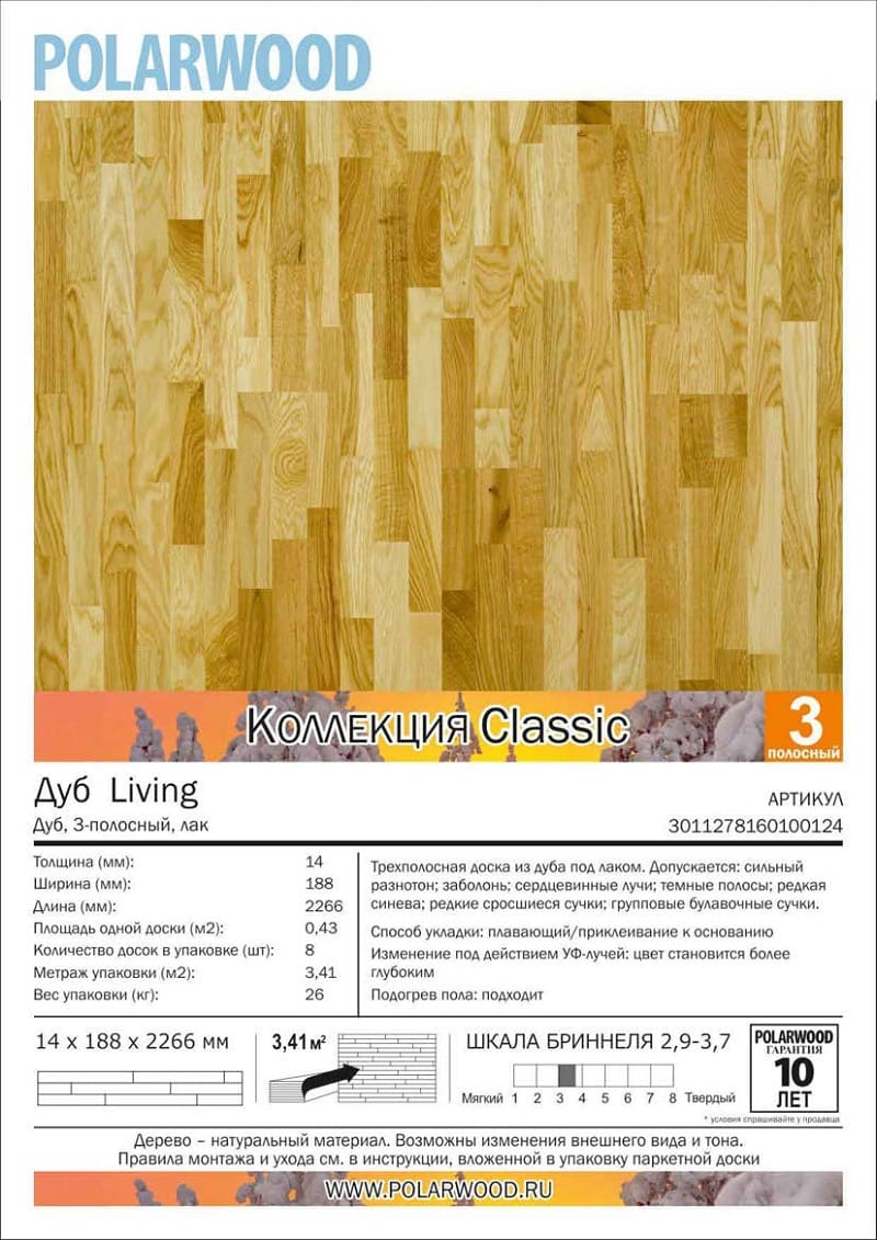 Создайте теплую и естественную атмосферу с паркетной доской POLARWOOD Дуб Ливинг 3S!