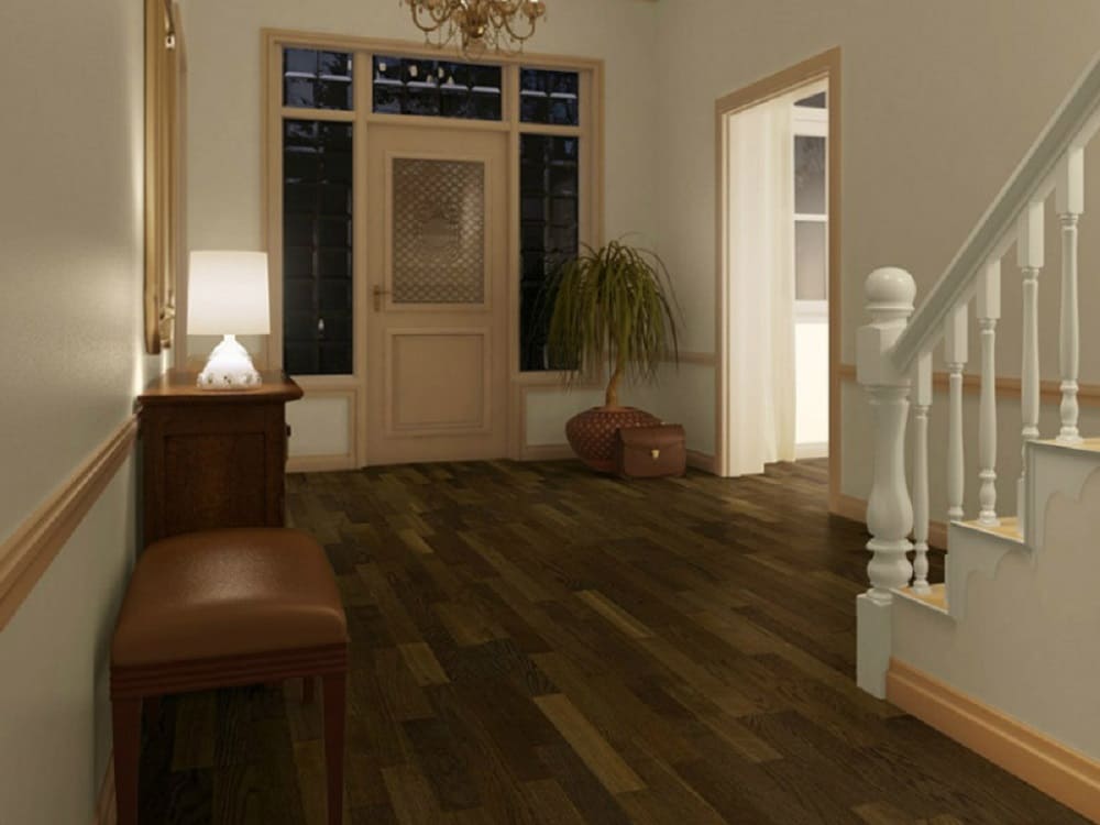 - Современный интерьер: Теплый коричневый тон и фактура брашировки хорошо сочетаются с современной мебелью, создавая сдержанный и элегантный фон.