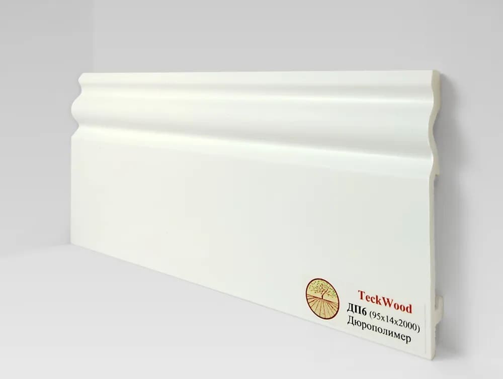 В нашем магазине в Минске вы можете посмотреть образец и заказать напольный плинтус из дюрополимера TeckWood Белый ДП6 высотой 95 мм по цене дилера со скидкой на объеме.