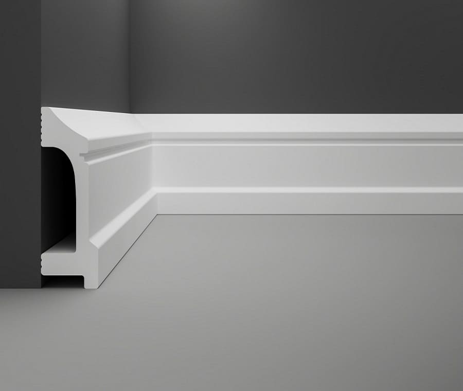 В нашем магазине в Минске вы купите белый напольный плинтус из дюрополимера SK-35 100x32x2000 мм по цене дилера с доставкой по Беларуси. Практичный, надежный профиль для пола изготовлен из полистирола ультравысокой плотности (дюрополимера HDPS Polymer), поэтому он не боится воды, ударов, не деформируется, не подвержен гниению и образованию грибка. Планка легко окрашивается и перекрашивается в любой цвет. Материал загрунтован и окрашен двухкомпонентным полиуретановым грунтом на водной основе.