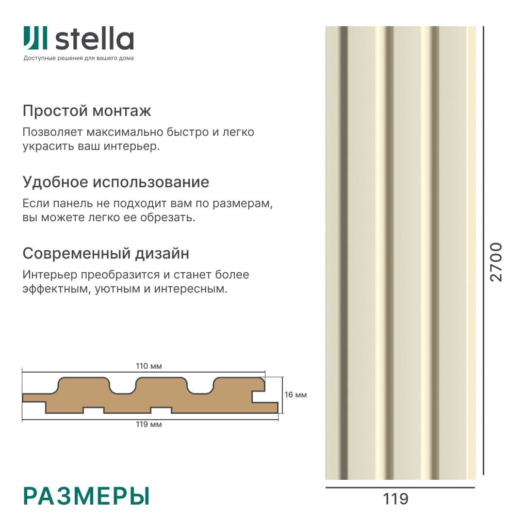 Панель Стеновая Реечная МДФ Stella Beats De Luxe Palomino 2700 x 119 x 16 мм представляет собой современное и лаконичное решение для красивого интерьера. Изготовленная из высококачественного МДФ, она обладает стильной реечной текстурой, которая добавляет помещению изящества и актуальности.