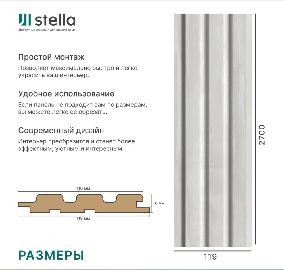 Панель Стеновая Реечная МДФ Stella Beats Standart Дуб Претто 2700 x 119 x 16 мм представляет собой современное и лаконичное решение для красивого интерьера. Изготовленная из высококачественного МДФ, она обладает стильной реечной текстурой, которая добавляет помещению изящества и актуальности.