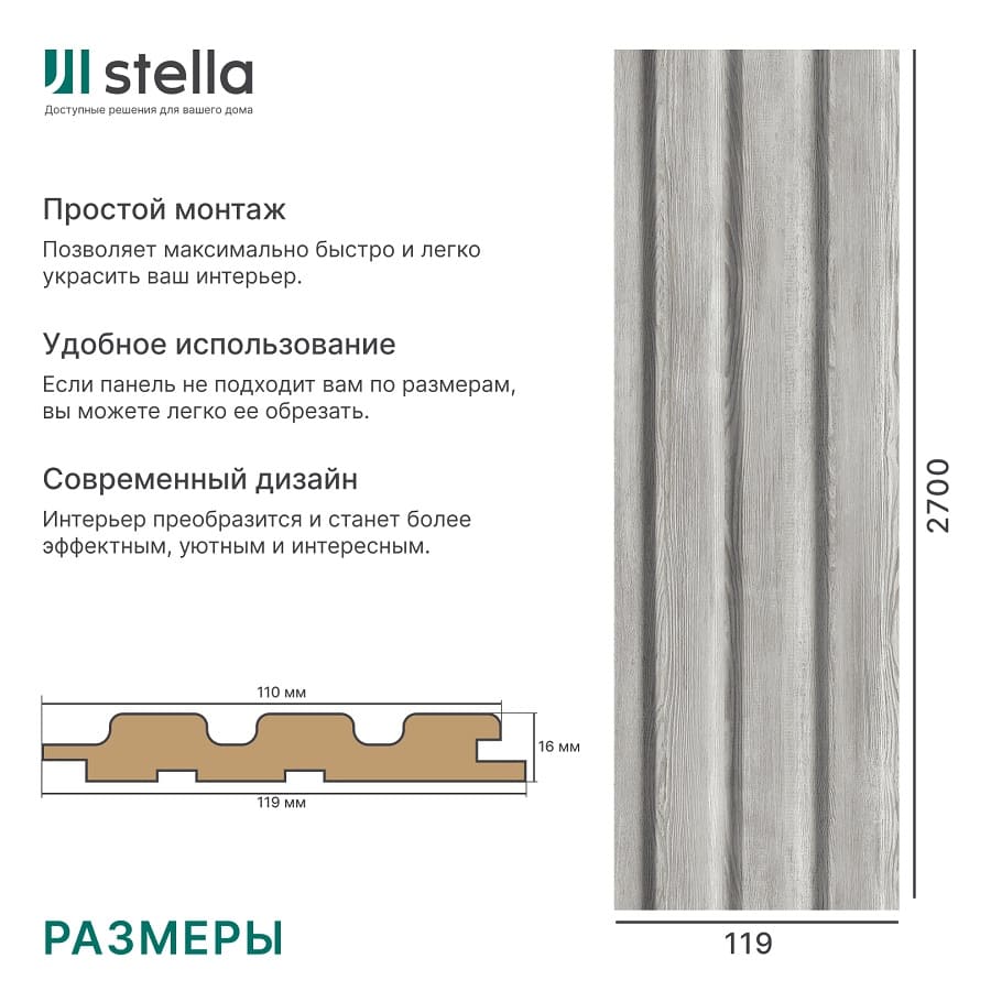 Создайте уютный интерьер с реечными панелями STELLA Beats Standart "Сосна Астана" 119 мм, длина 2.7 м. Доставка по Минску и Беларуси.